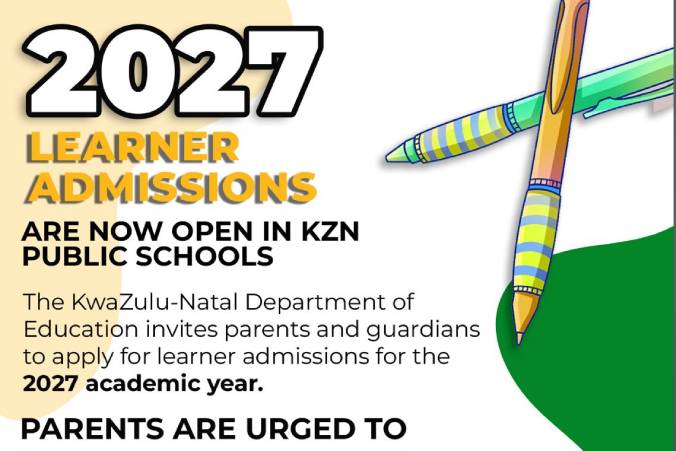 The KwaZulu-Natal Department of Education has started accepting applications for public school admissions for the 2027 school year. They are encouraging parents and guardians to apply early to make sure their kids get a spot.Applications began on Wednesday, April 8, and will end on Monday, August 31.